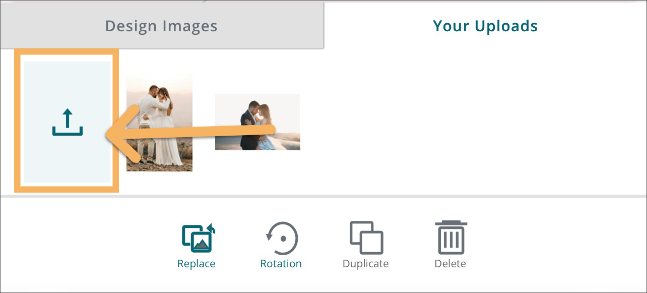 - Upload an Image - To upload your own image, tap on the Your Uploads tab and use the "upload" image icon button to upload your image (see below).